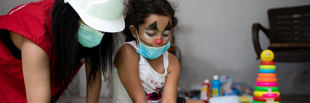 Sonia, age 8, playing games at the child-friendly space created by Save the Children to help traumatized children after the explosion in Beirut, Lebanon.